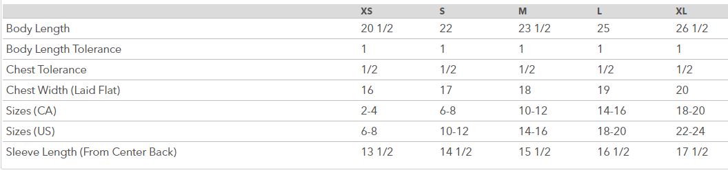 - Youth sizing