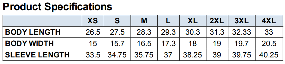 • Sizing Details