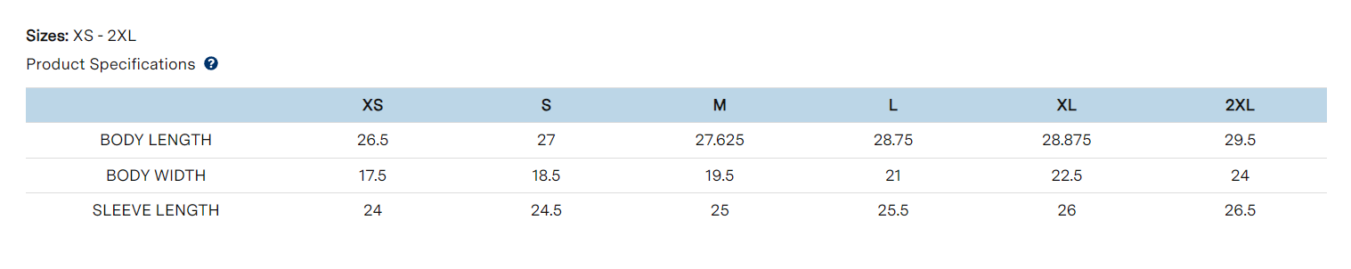 Sizing Details